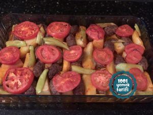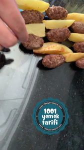 - köfte ve patateslerimizi fazla yağından arındırıp fırın kabımıza dizelim.
