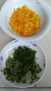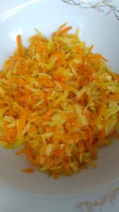 - Öncelikle rendelenmiş havuç ve kabağı bir tavada zeytinyağı ile soteleyelim.. Ardından soğumaya bırakalım.