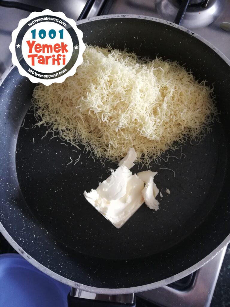 - Bir tavaya kadayıfımızı ve margarinimizi alalım ve kadayıgları kızartalım.