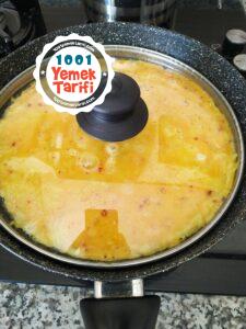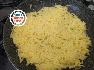 - Üzerine patateslerimizi ilave ederek karıştırıp kapağını kapatalım, arada karıştırarak kızartalım.