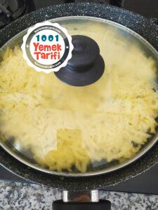 - Üzerine patateslerimizi ilave ederek karıştırıp kapağını kapatalım, arada karıştırarak kızartalım.
