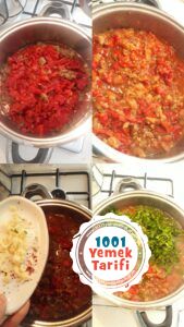 • Yemeklik doğrayıp tencereye alin ve domatesi pişirmeye başlayın.