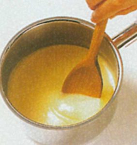 - Tencereye süt, su, un, nişasta, şeker ve vanilyayı koyup karıştırın. Pürüzsüz bir hale gelince tencereyi ateşe alın. Katılaşıncaya kadar pişirin.