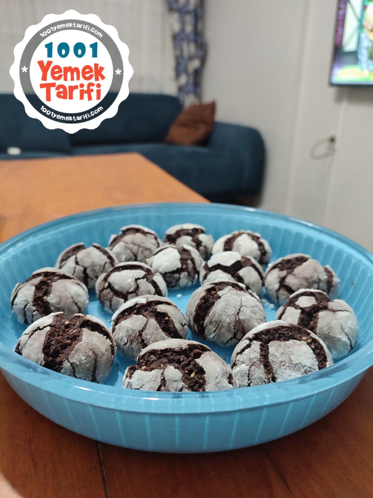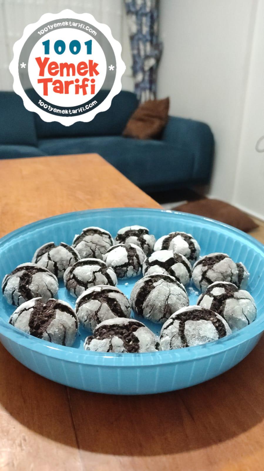 - Dolapta 40 dakika beklettiğimiz hamuru dolaptan çıkarıyoruz top haline getirip pudra şekerini banıyoruz