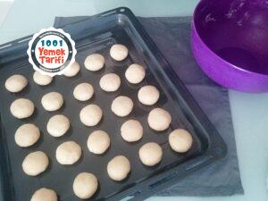 - Ceviz büyüklüğünde parçalar alıp yuvarladığımız hamurumuzu tepsimize diziyoruz.