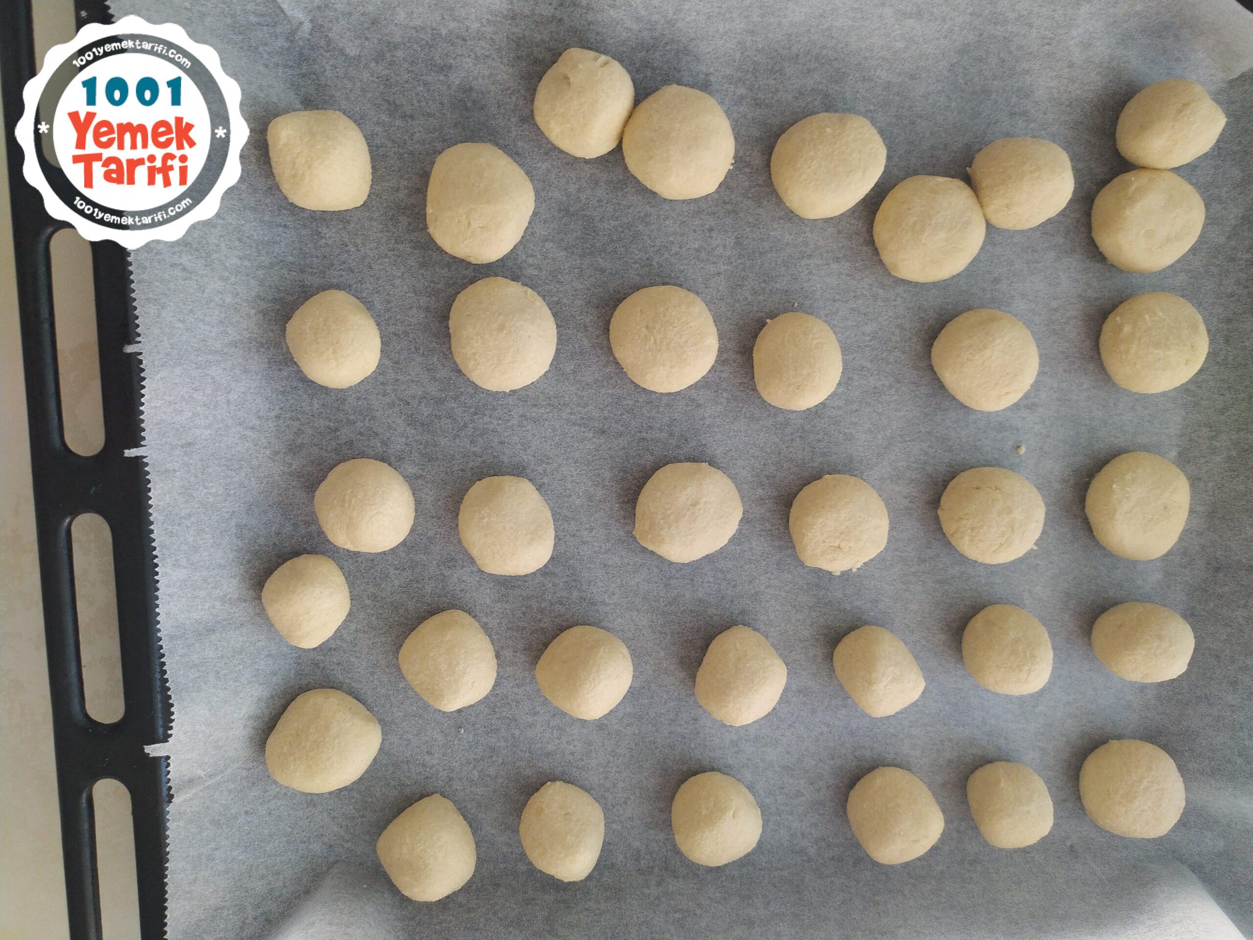 • Hamurdan ceviz büyüklüğünde parçalar kopartılarak tepsiye dizilir.