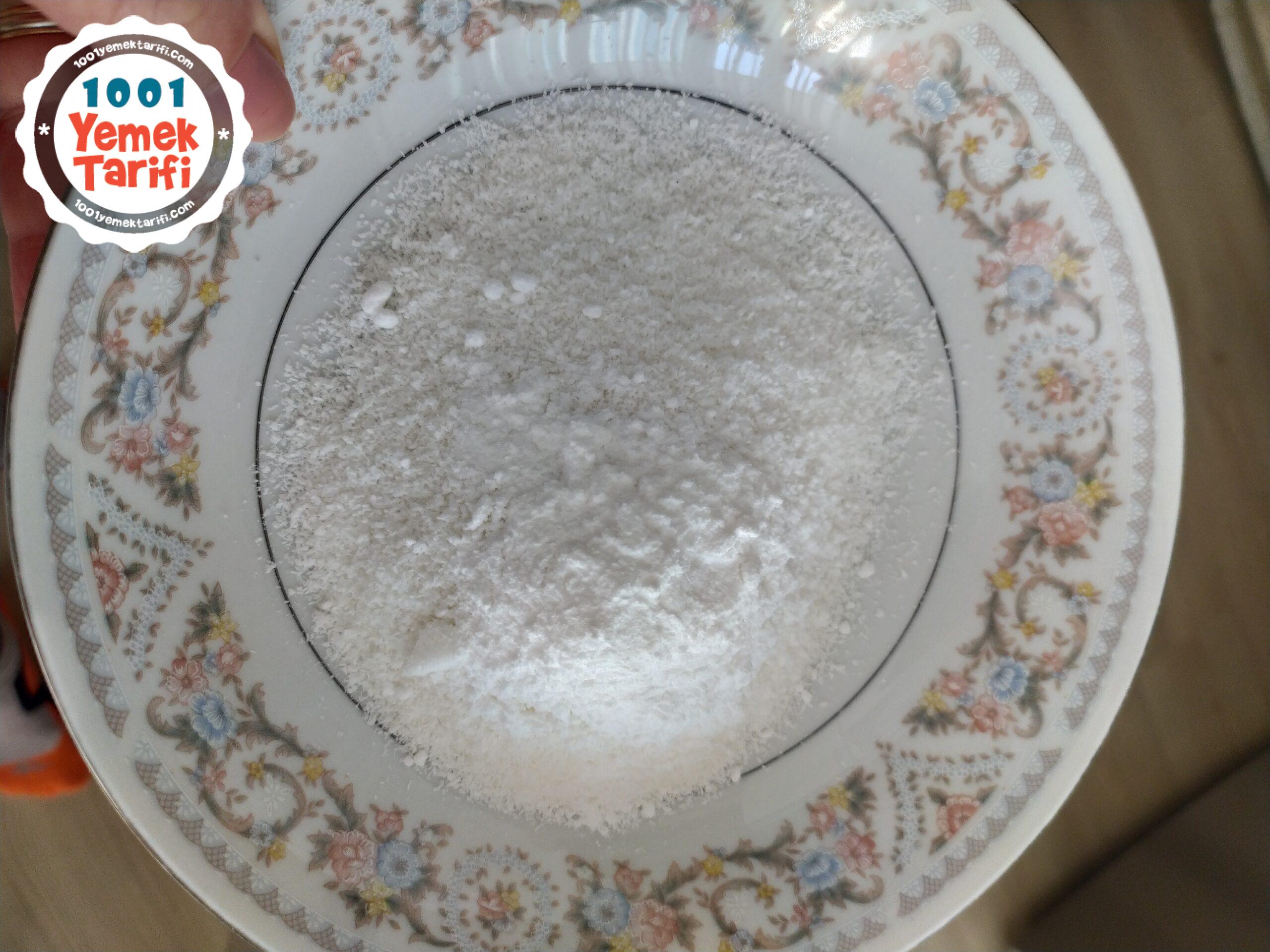 • Üzerine toz şeker ve hindistan cevizi eklenerek karıştırılır.