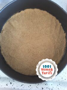- Sonra kalıp ıslatılır ve dibine rondo da çekilmiş bisküviler serpilir.