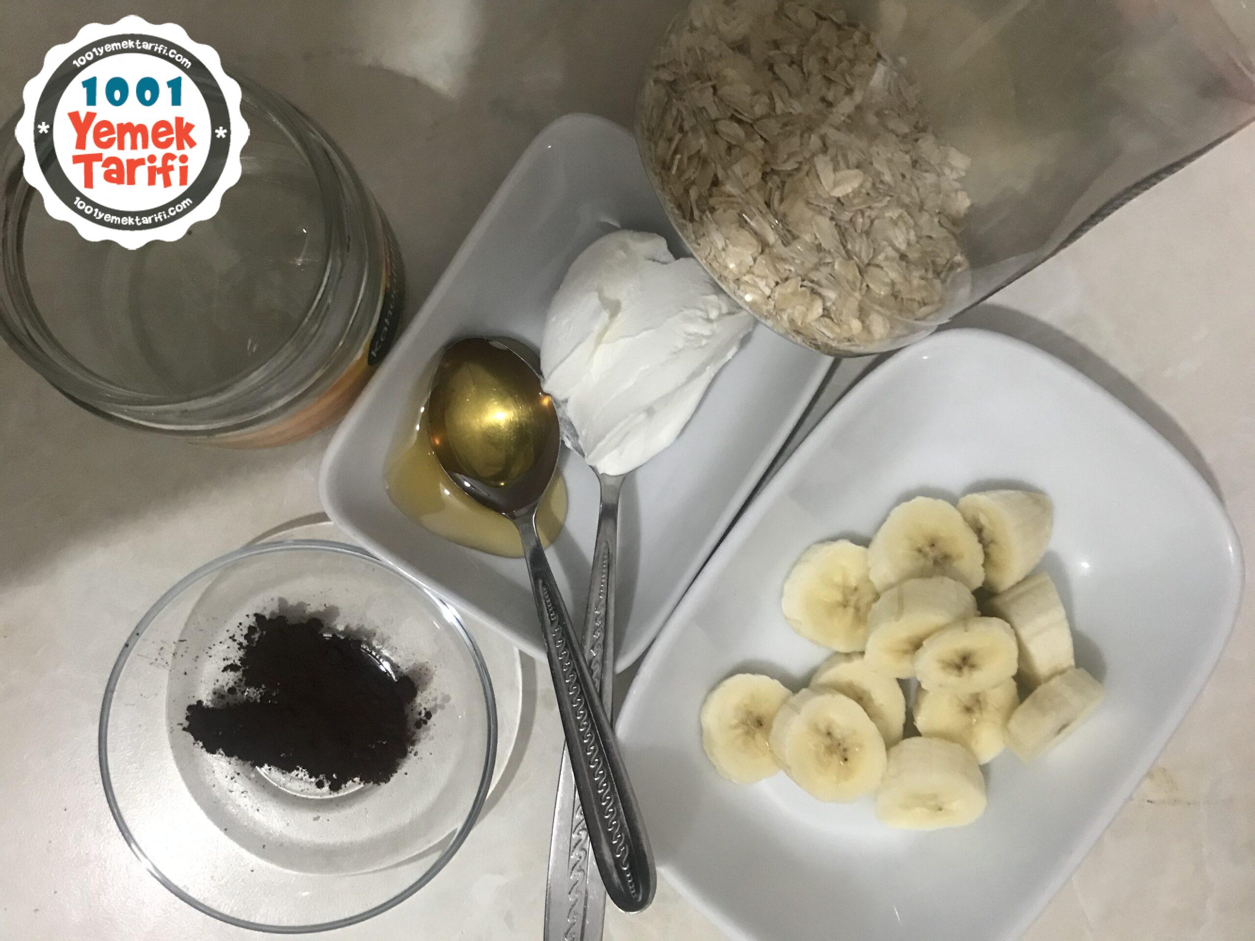 - 3 yemek kaşığı yulafı kavanozumuza koyup tabanı oluşturuyoruz