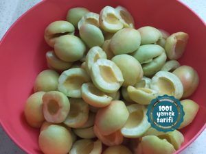 • Kayısıları ortadan ikiye ayıralım,