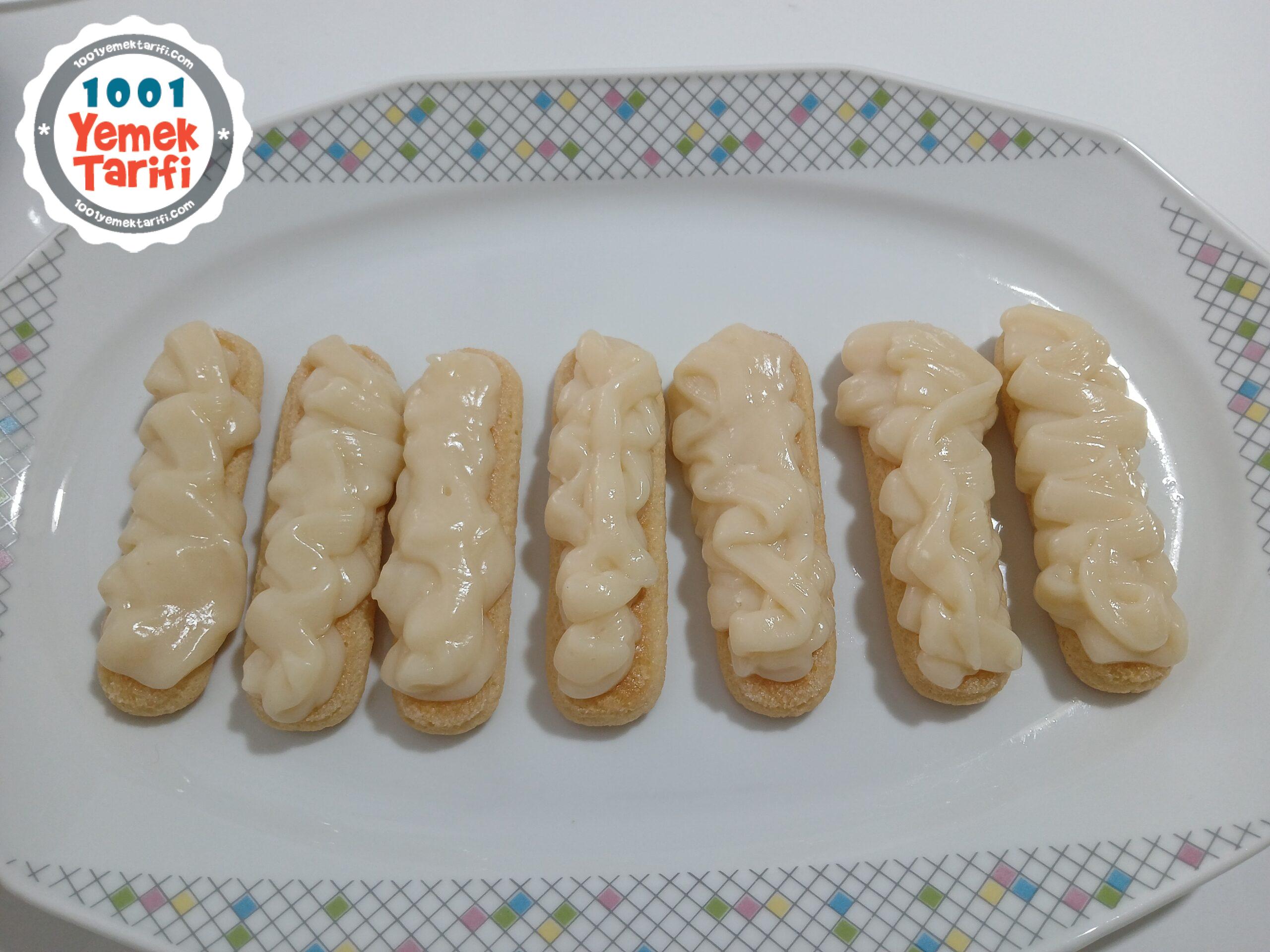 - 7 adet kedidilimizi çok ıslatmadan arkalı önlü süte batırıp servis tabağımıza diziyoruz.