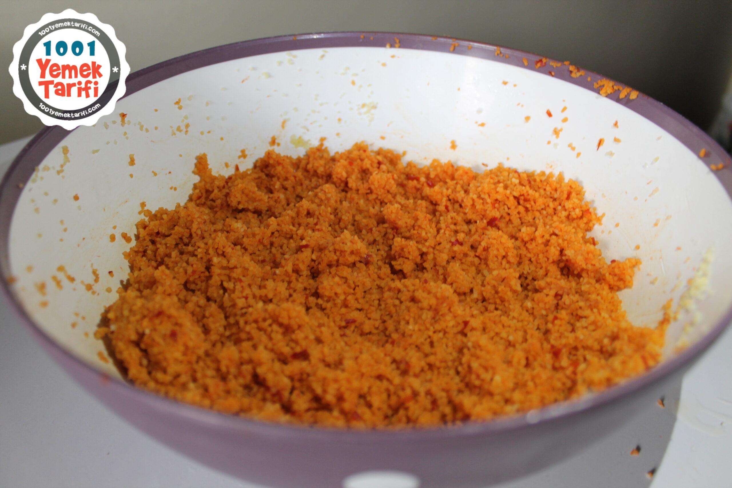 - Bulgur yumuşayınca üzerine domates ve biber salçası ekliyoruz ve iyicene yoğuruyoruz.