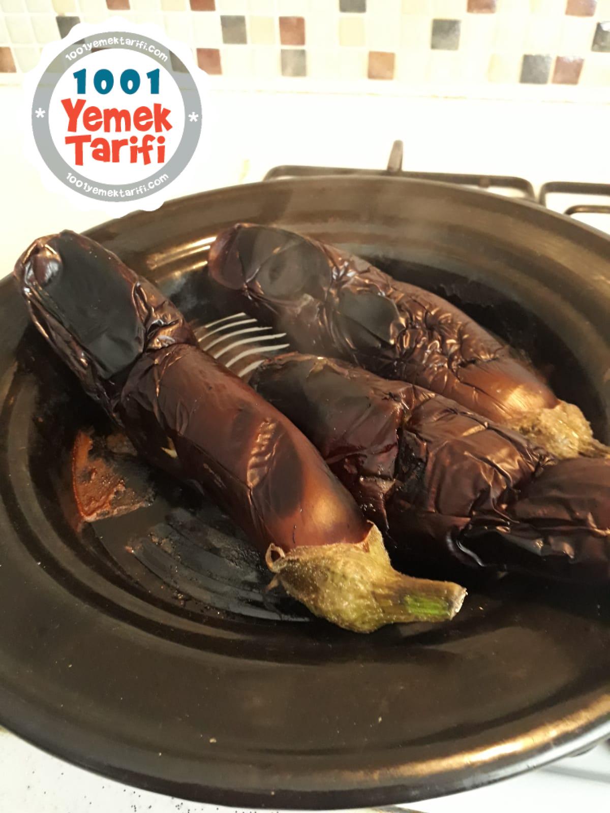 - Patlıcanları közmatik tavada alıp arada döndürerek közleyin.