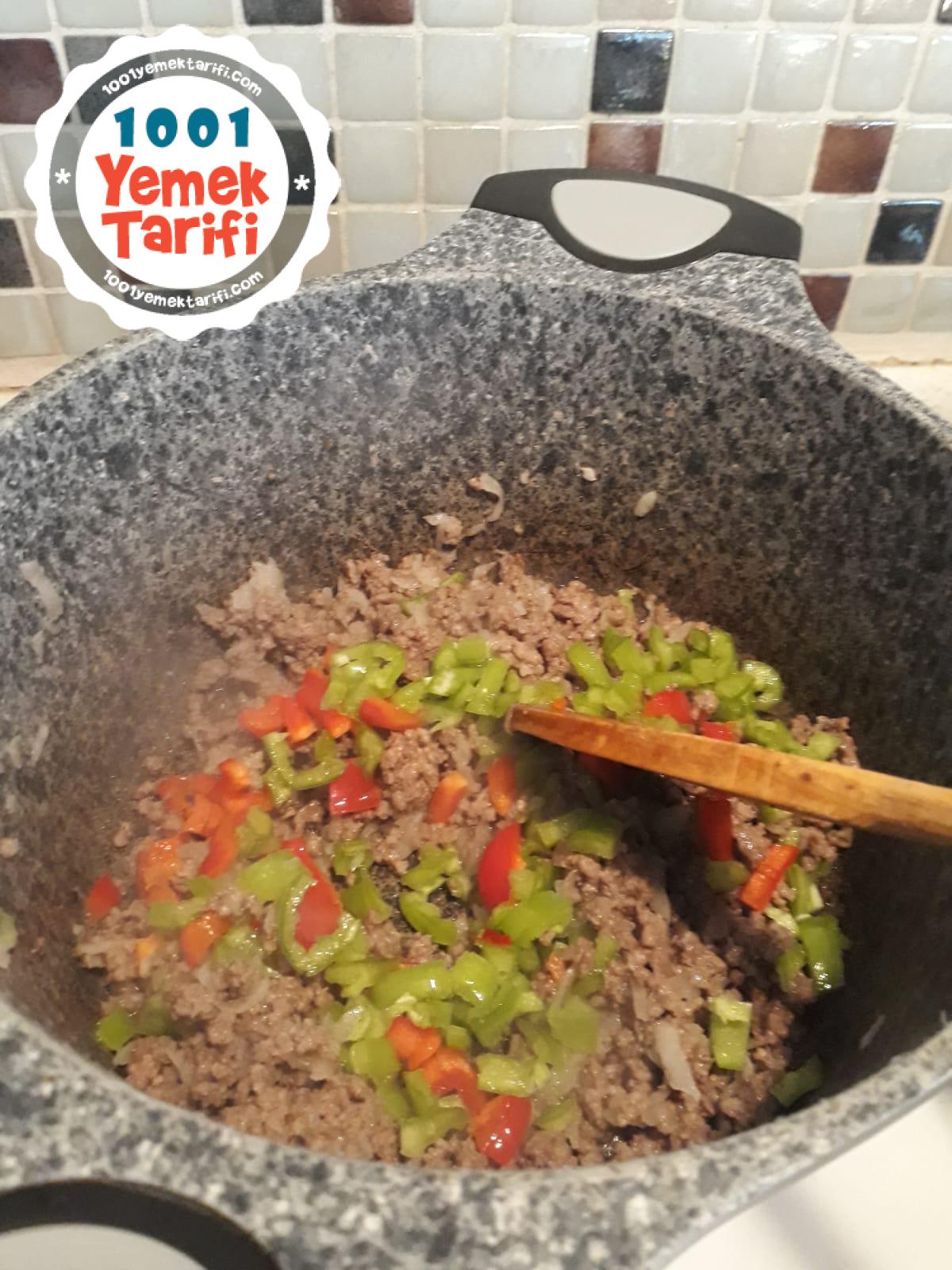 - Yemeklik doğranmış biberleri ilave edin yumuşayana kadar pişirin.