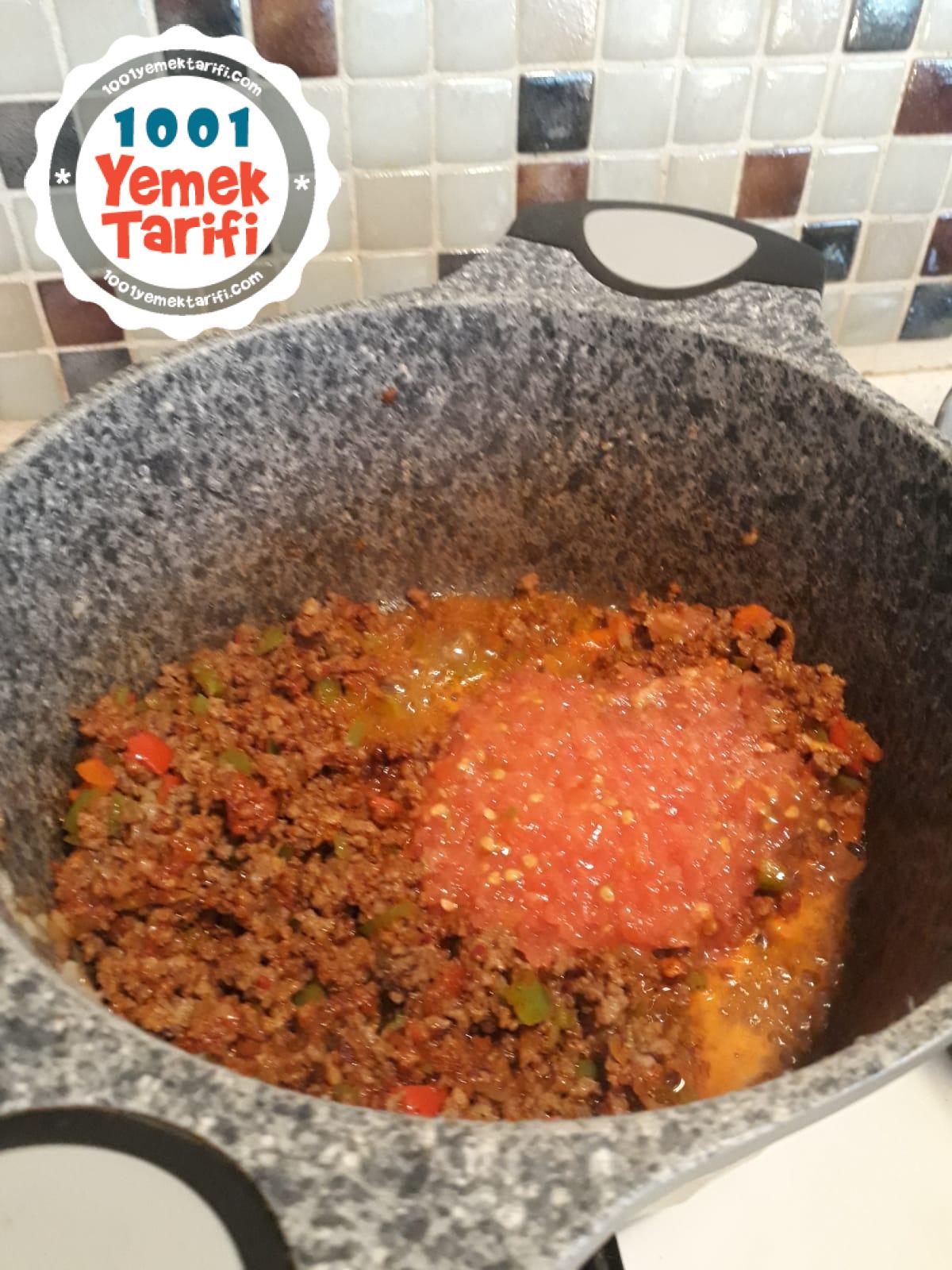 - Rendelenmiş domatesi de koyup biraz çevirin.