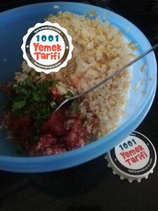 - Kıyma rendelenmiş soğan maydanoz salça sıvıyağ ve baharatları ekleyip güzelce karıştırıyoruz.