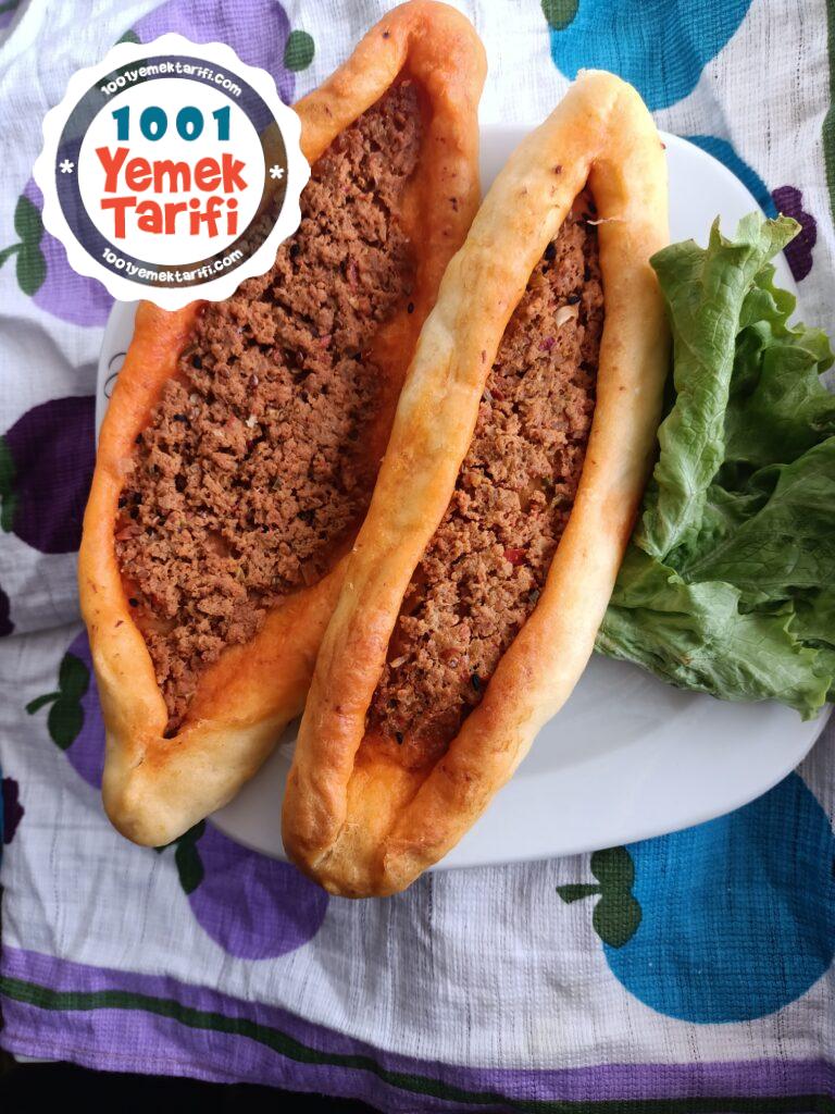 - Hamurumuzu unlu bir tezgaha alalım ve üzerinde pide şeklini verelim içerisine iç harcımızı koyalım.