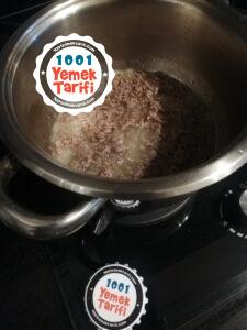 - Uygun bir tencereye sıvıyağı alıp üzerine kıymayı koyalım ve kavuralım