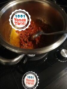 - Kavrulan kıymaya salçayı ekleyelim