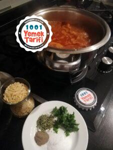 - Karıştırarak suyunu ilave edelim. Kaynayan salçalı suyumuza şehriyeyi ilave edelim baharatlarını da eklediğimiz çorbamızı pişmeye bırakalım