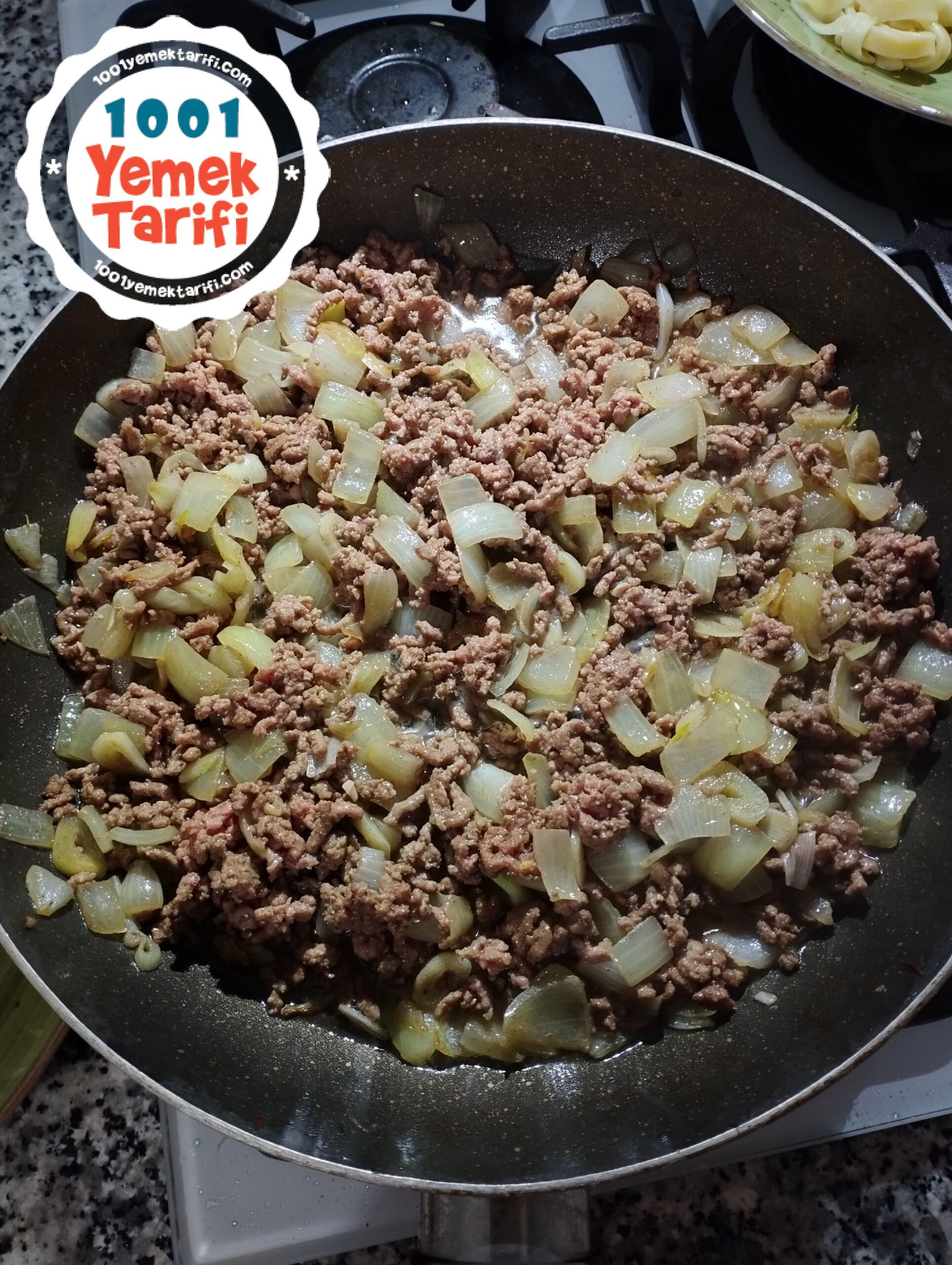 - Biraz kavurduktan sonra kıymamızı koyuyoruz ve güzelce pişiriyoruz.
