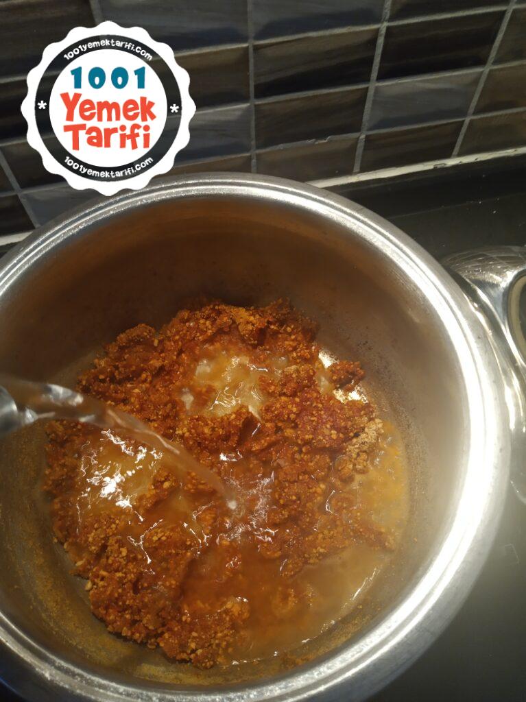 - Soğuk suyu ekleyip sürekli karıştırarak pişirelim