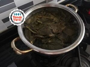 - Beş ila on dakika arası haşlanan yaprakları süzgeçe alıp soğuk sudan geçirelim