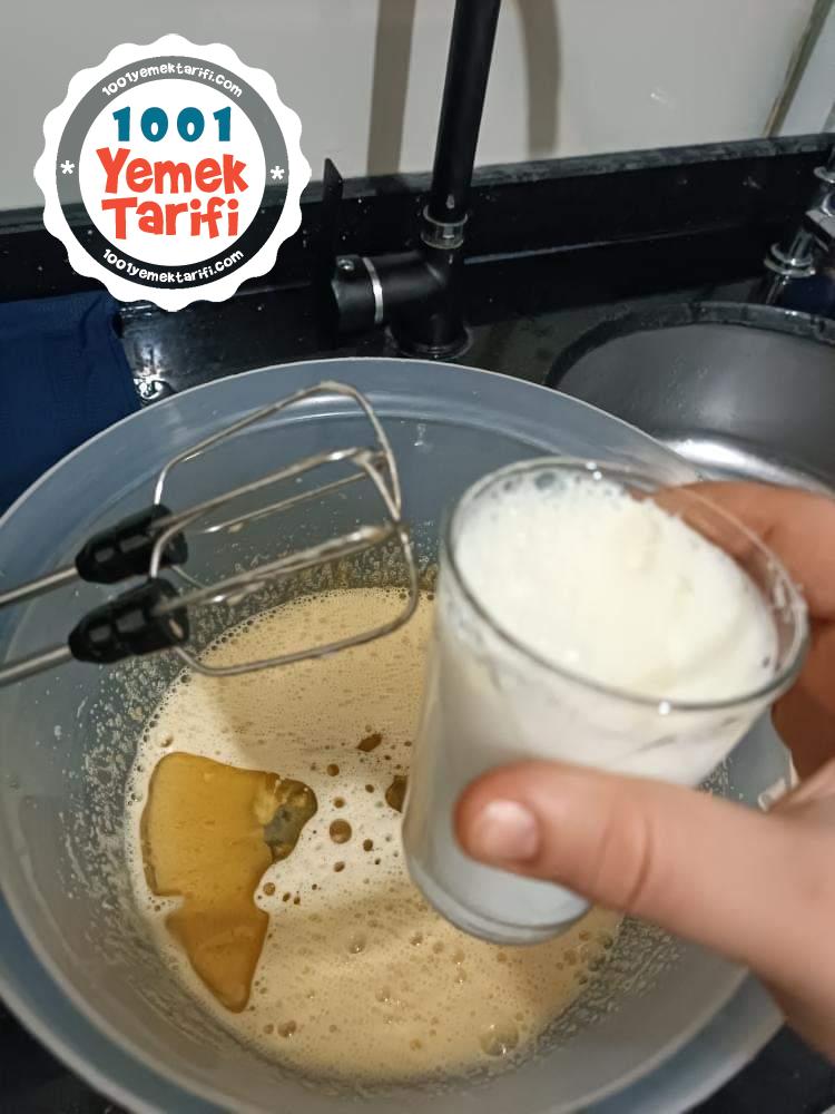 - Sıvı yağ ve sütü ekleyelim