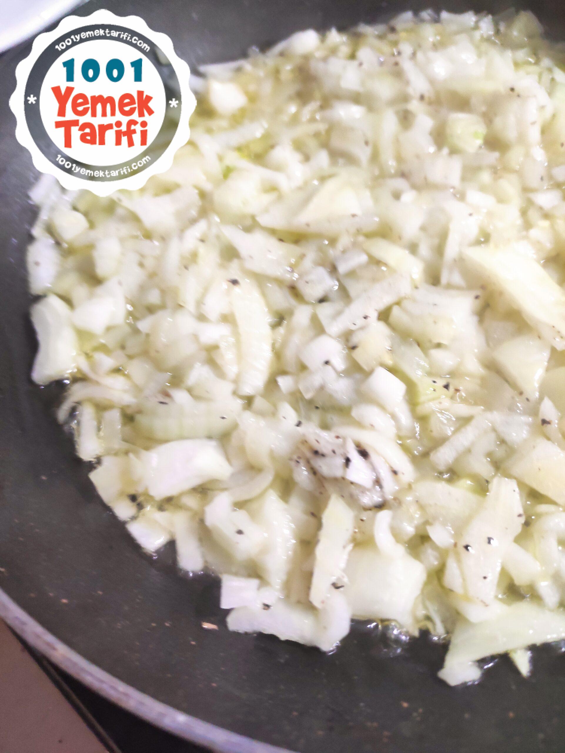 • İlk olarak soğan tuz ve karabiber ile zeytinyağın da kavurulur.