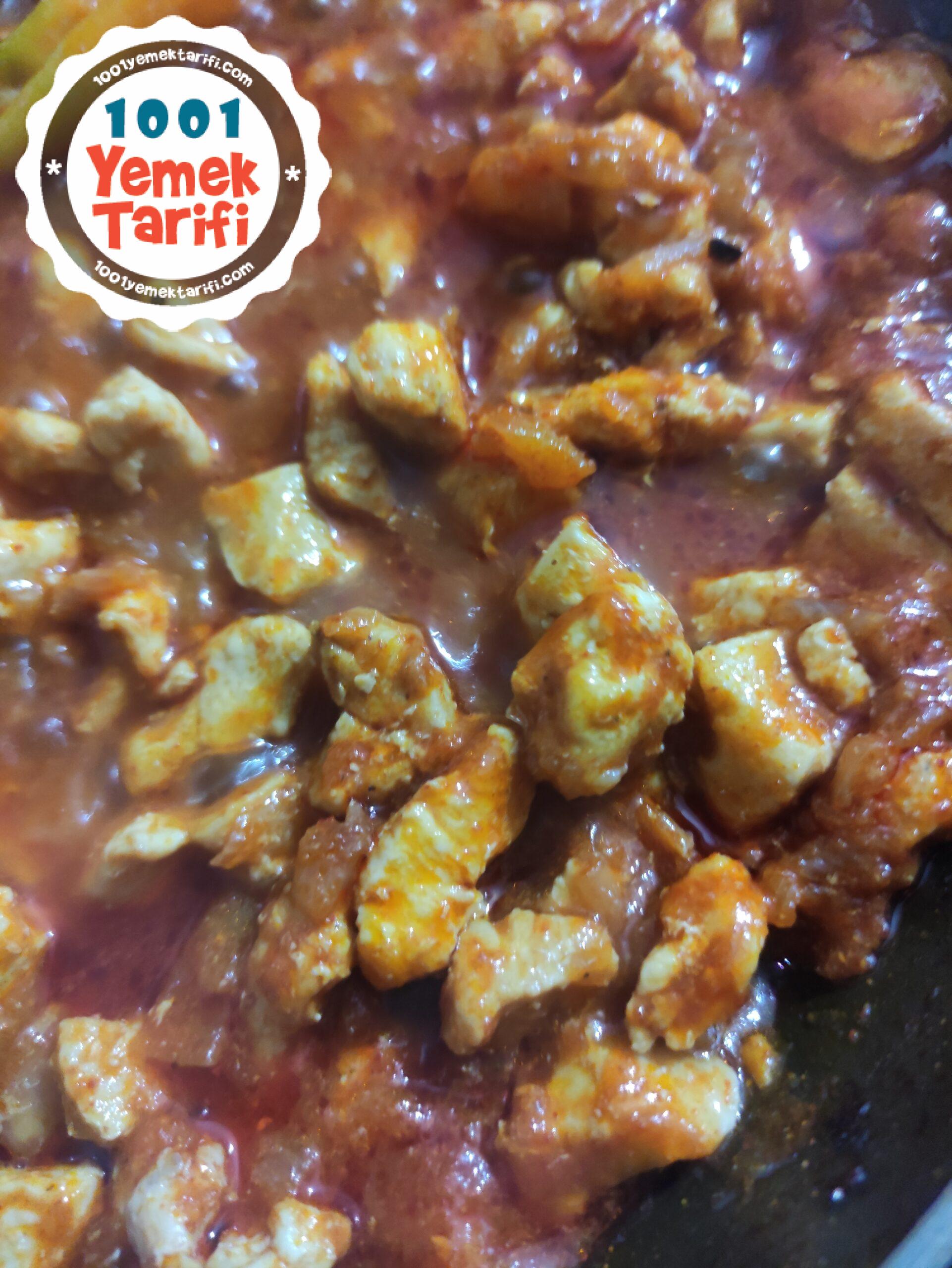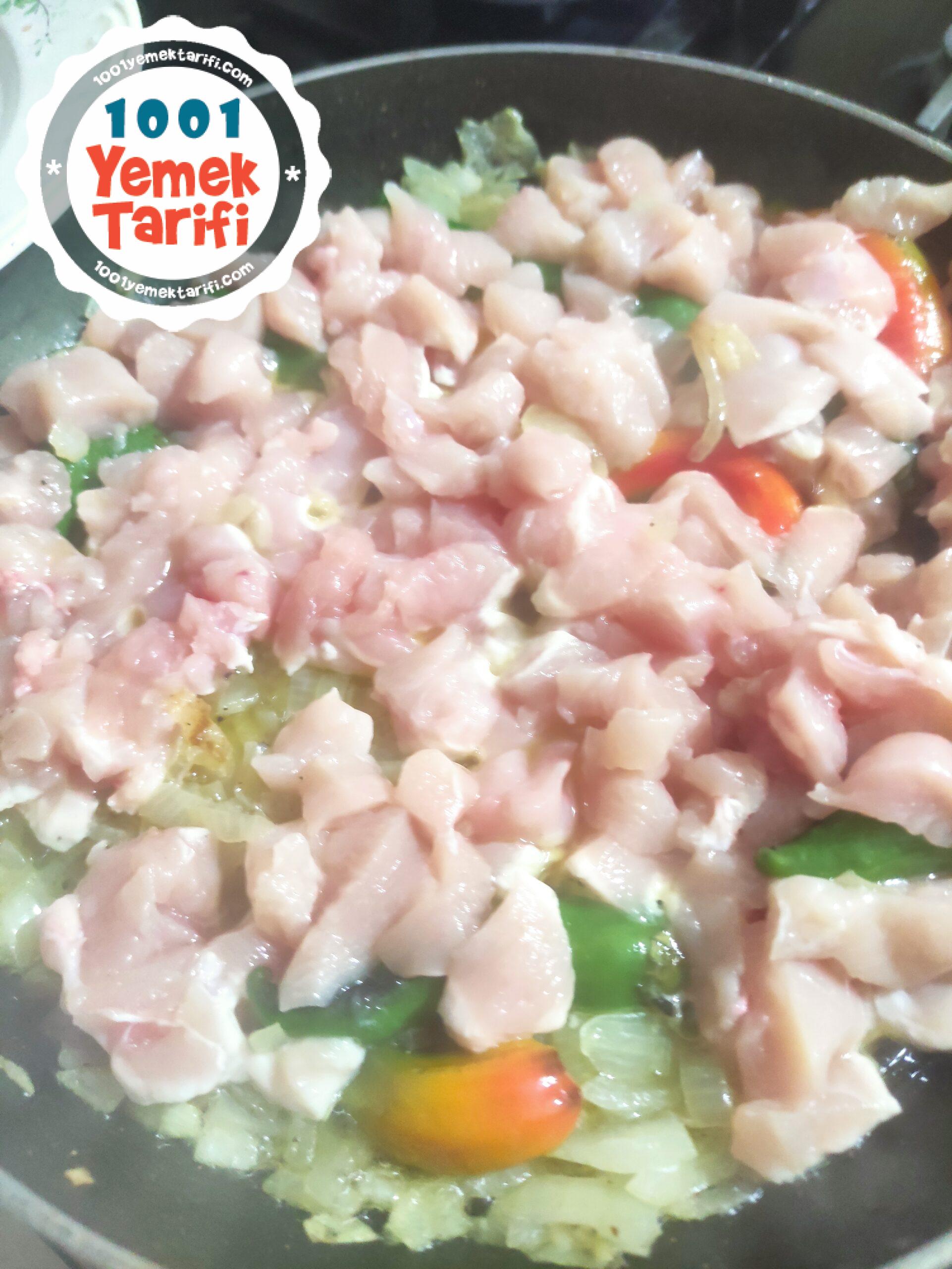 • Ardından kesilen tavuk ve biber eklenerek karıştırılır.