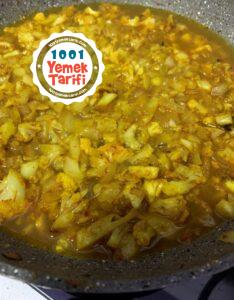 - Baharatların güzelce karışması ve tavanın dibindeki lezzetleri kazımak için 1 su bardağı kadar sıcak su ilave edip karıştırın. Kapağını kapatıp 5-6 dakika kadar pişirin.