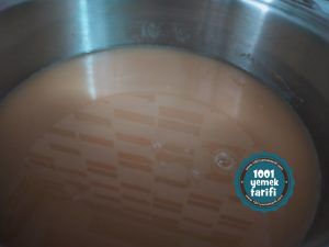 - Süzmüş olduğumuz kozalak suyumuzu bardakla ölçelim ve ocağa alıp kaynamaya bırakalım 10 dakika kaynayınca kaç barkada kozalak suyunuz varsa ona göre aynı miktarda ( benim 12 su bardağı kozalak suyum çıkmıştı 12 su bardağı şeker ekledim ).