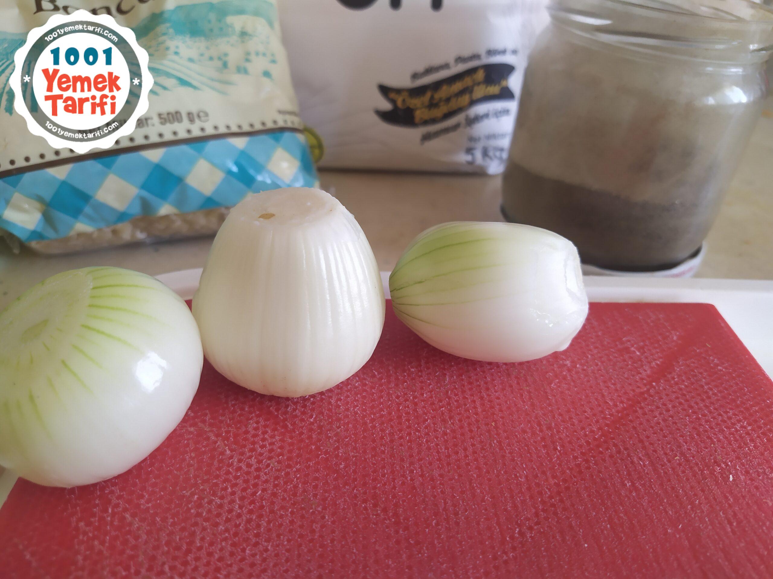 - Daha sonra soğanları küp küp doğrayıp erittiğimiz tereyağın içine atıp pembeleşeneye kadar kavuruyoruz