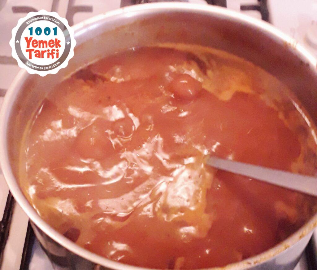 - Tavuk suyu ve normal su ilave edip karıştırıyoruz.