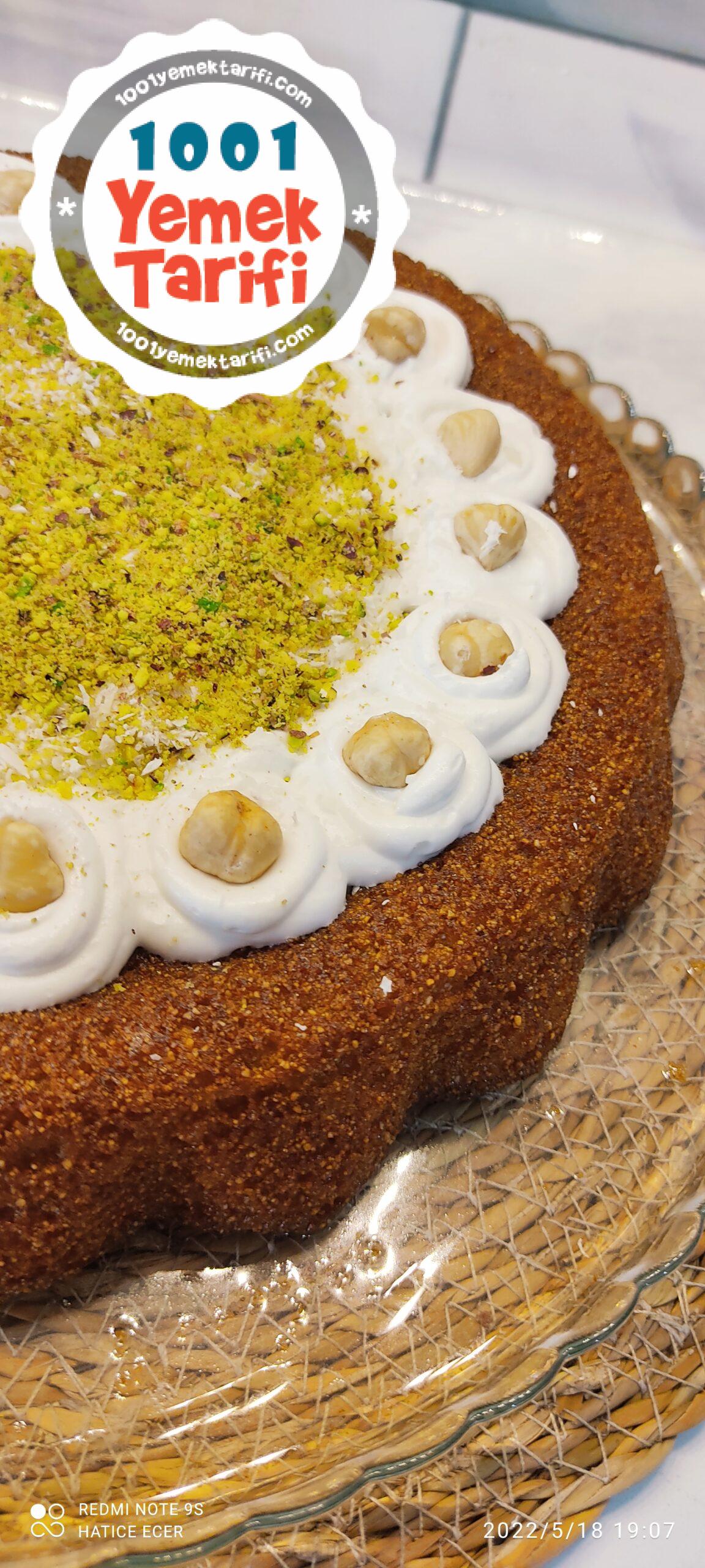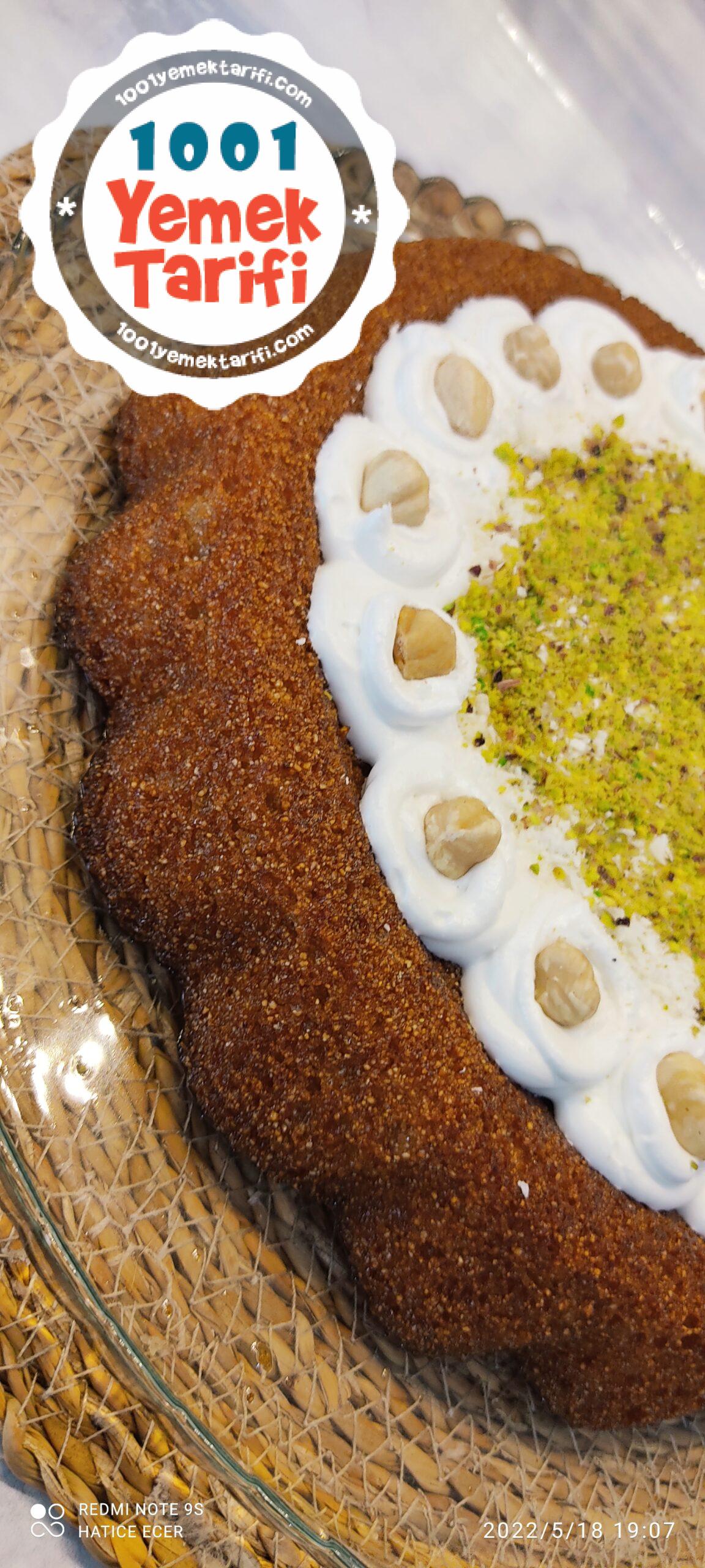 - Şerbeti iyice çekip soğuduktan sonra kalıptan çıkarın ve kremşanti ile süsleyerek dinlenmeye bırakalım.