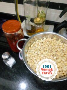 - Geceden ısladığımız fasulyeleri iyice haşlayıp suyunu süzüyoruz.