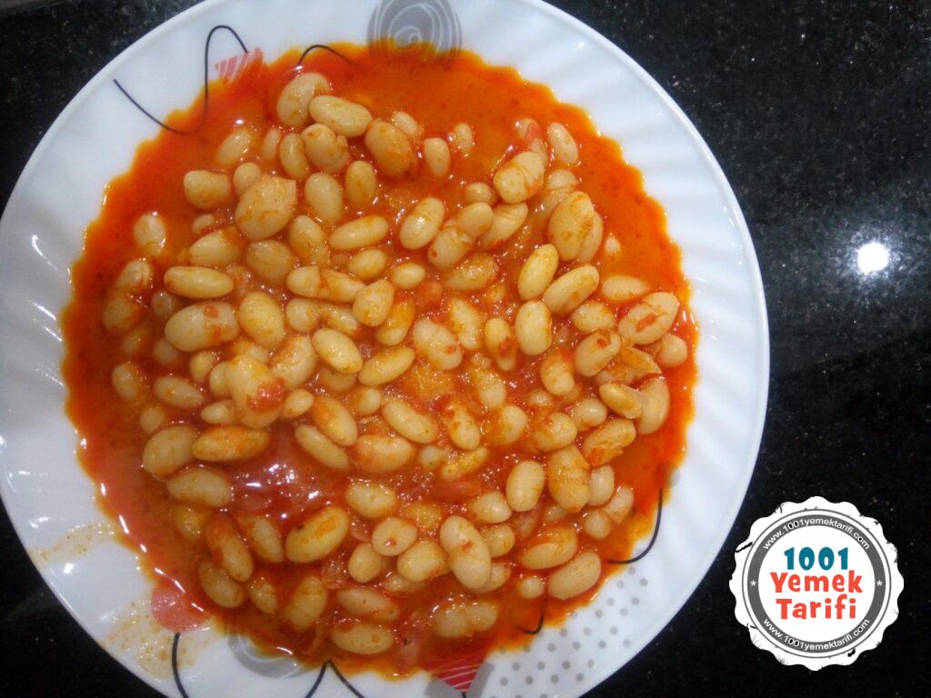 - Üstüne haşladığımız fasulyeleri ekleyip karıştırıyoruz. Üzerini geçecek kadar su ve baharatlarını ekleyip kaynamaya bırakıyoruz.