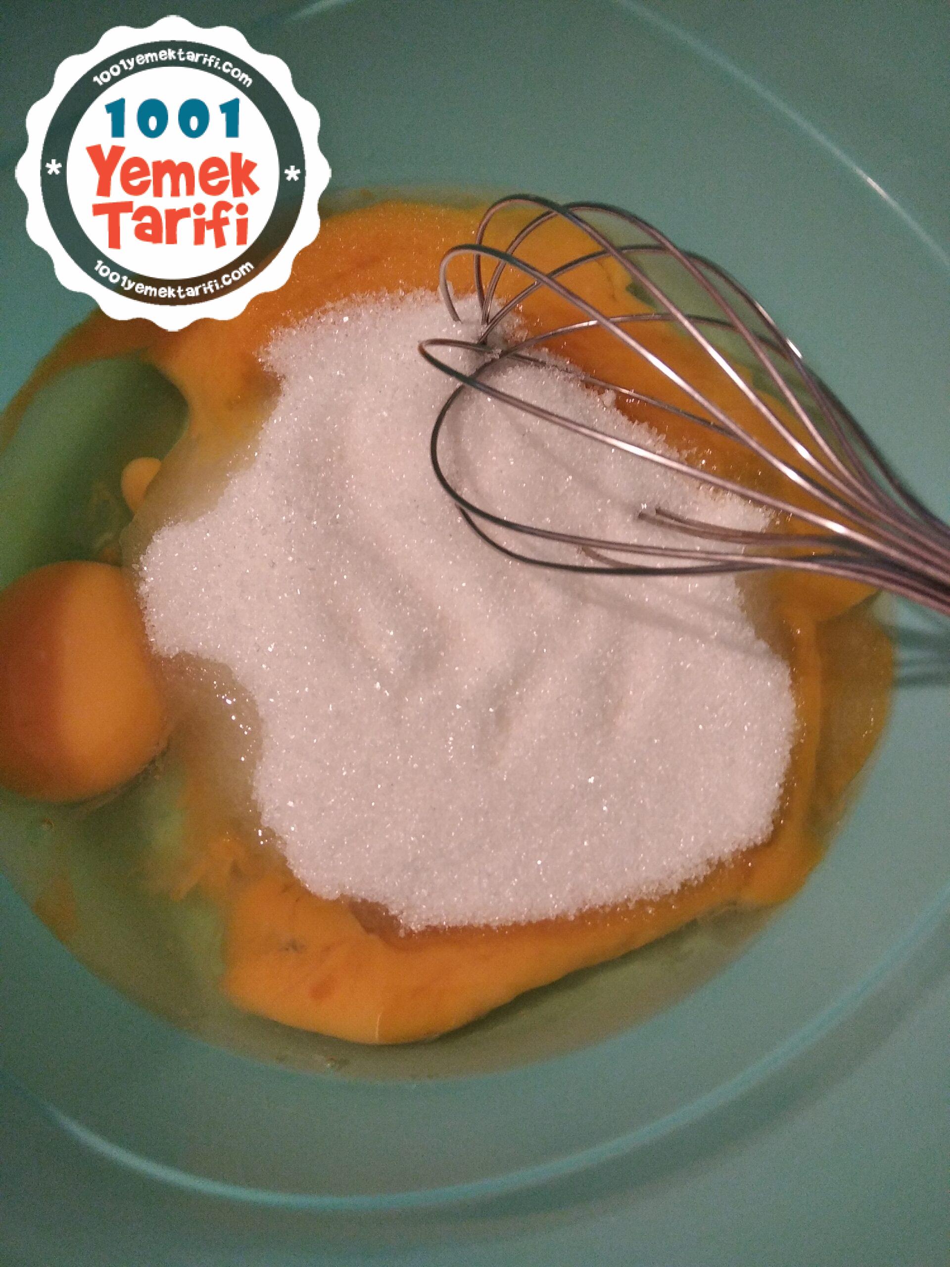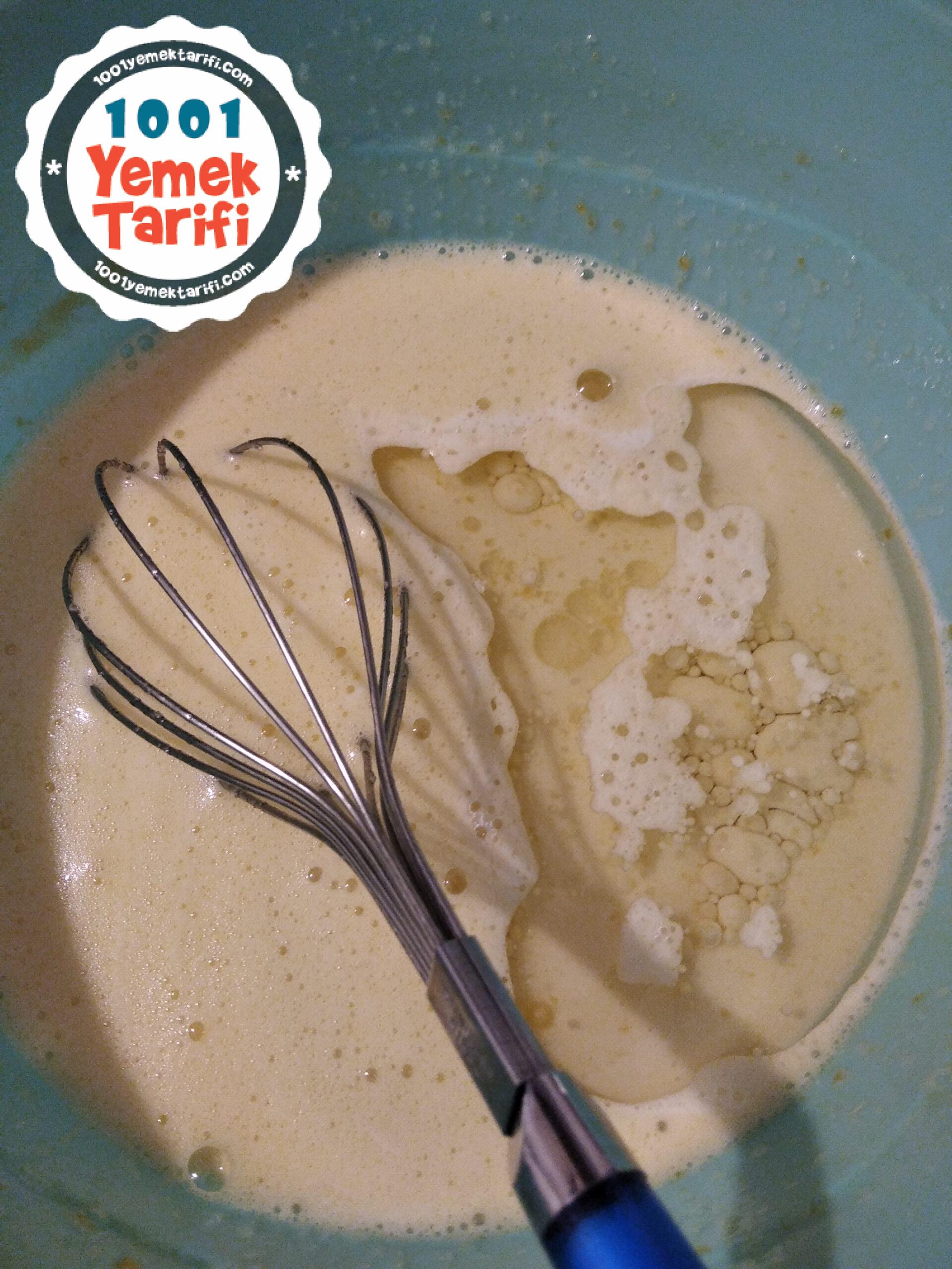 • Güzelce çırpılan yumurta ve toz şeker karışımına süt ve sıvıyağ ilave edilir