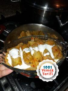 - Tencereye kıymayı soğanı ve salçayı ekleyip kavuruyoruz.