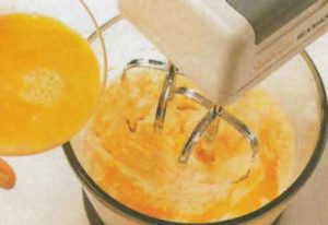 - Mikserle, tereyağını ve şekeri 10 dakika süreyle karıştırın. Yumurtaları ekleyin ve yavaşça çırpmaya devam edin. Vanilya ve irmiği de ilave ederek 5 dakika daha çırpın.