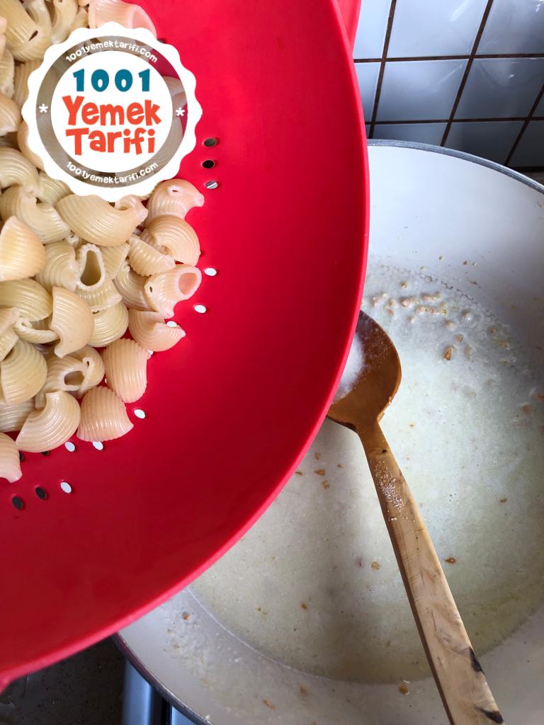 - -Süzdüğümüz makarnayı sos ile buluşturalım.