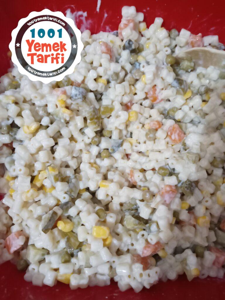 Gün sofralarının yıldızı, olmazsa olmazı, vazgeçilmez lezzeti ile hepimizin severek tükettiği makarna salatası tarifimle geldim bugün.🙂 Hem çok doyurucu hem de çok lezzetli olan makarna salatasını beş çaylarında ve misafir sofralarında da bol bol tercih ediyoruz. Çünkü yapımı kolay ve şipşak hazırlayabiliyoruz. Bende bu lezzetli salatayı sizler için tam ölçüsüyle ayrıntılı şekilde yazdım… Deneyeceklere afiyet olsun…🙂