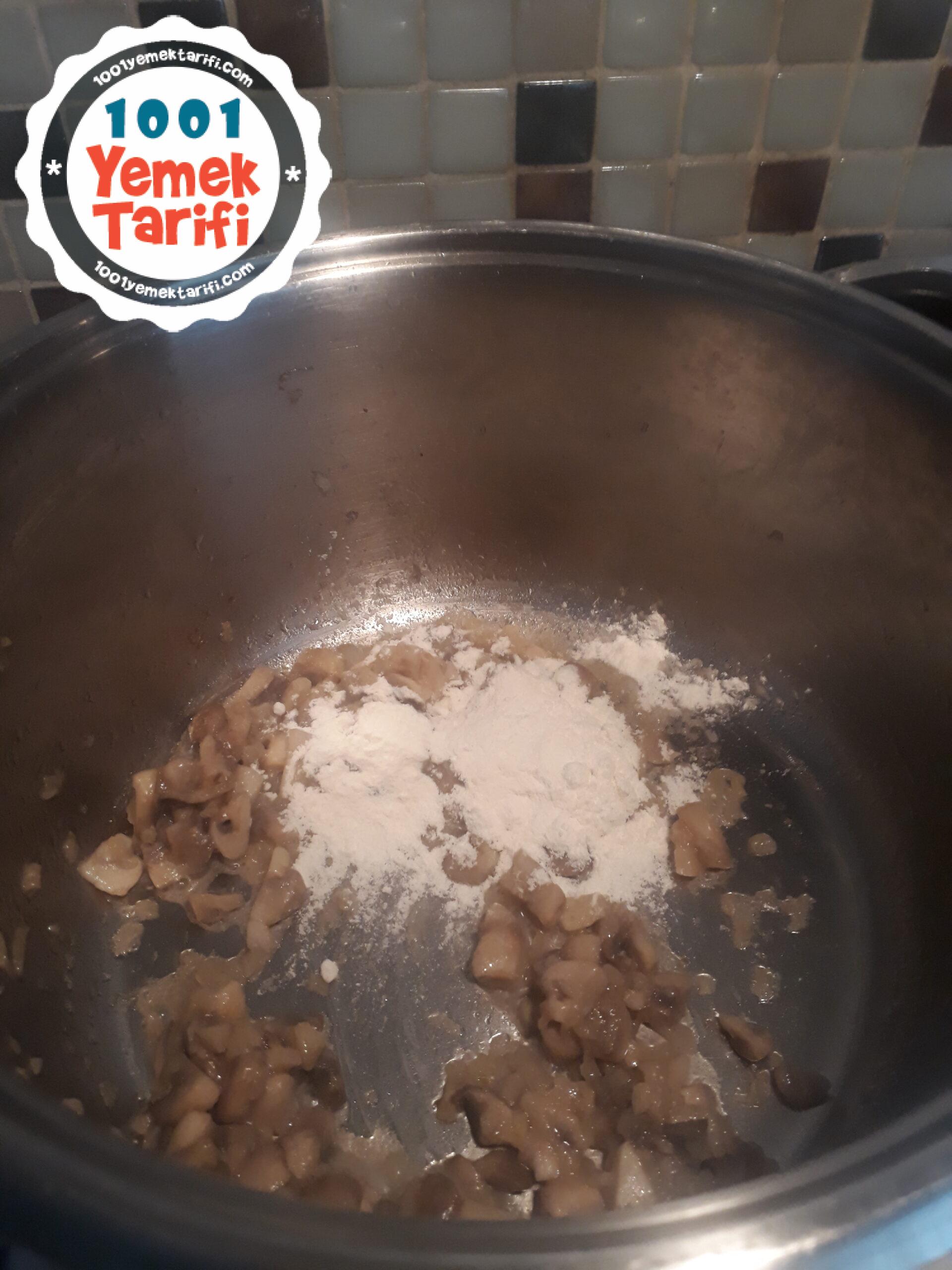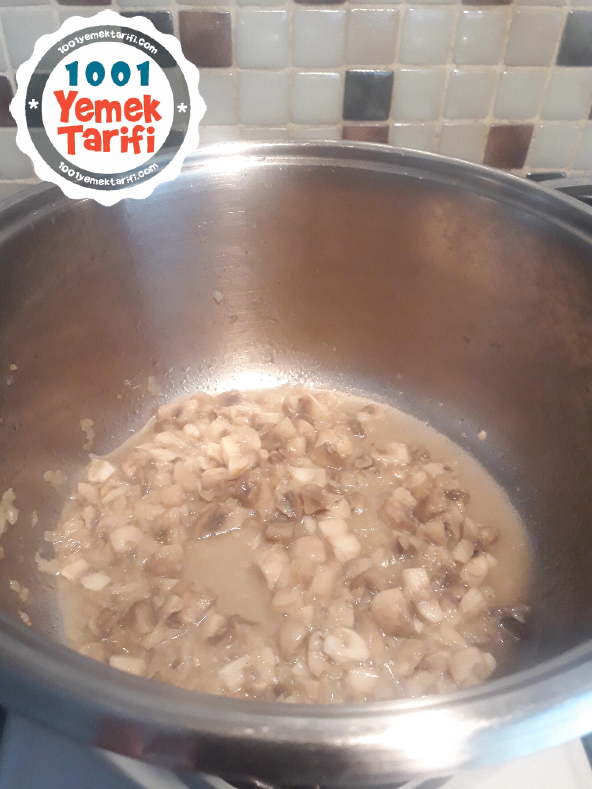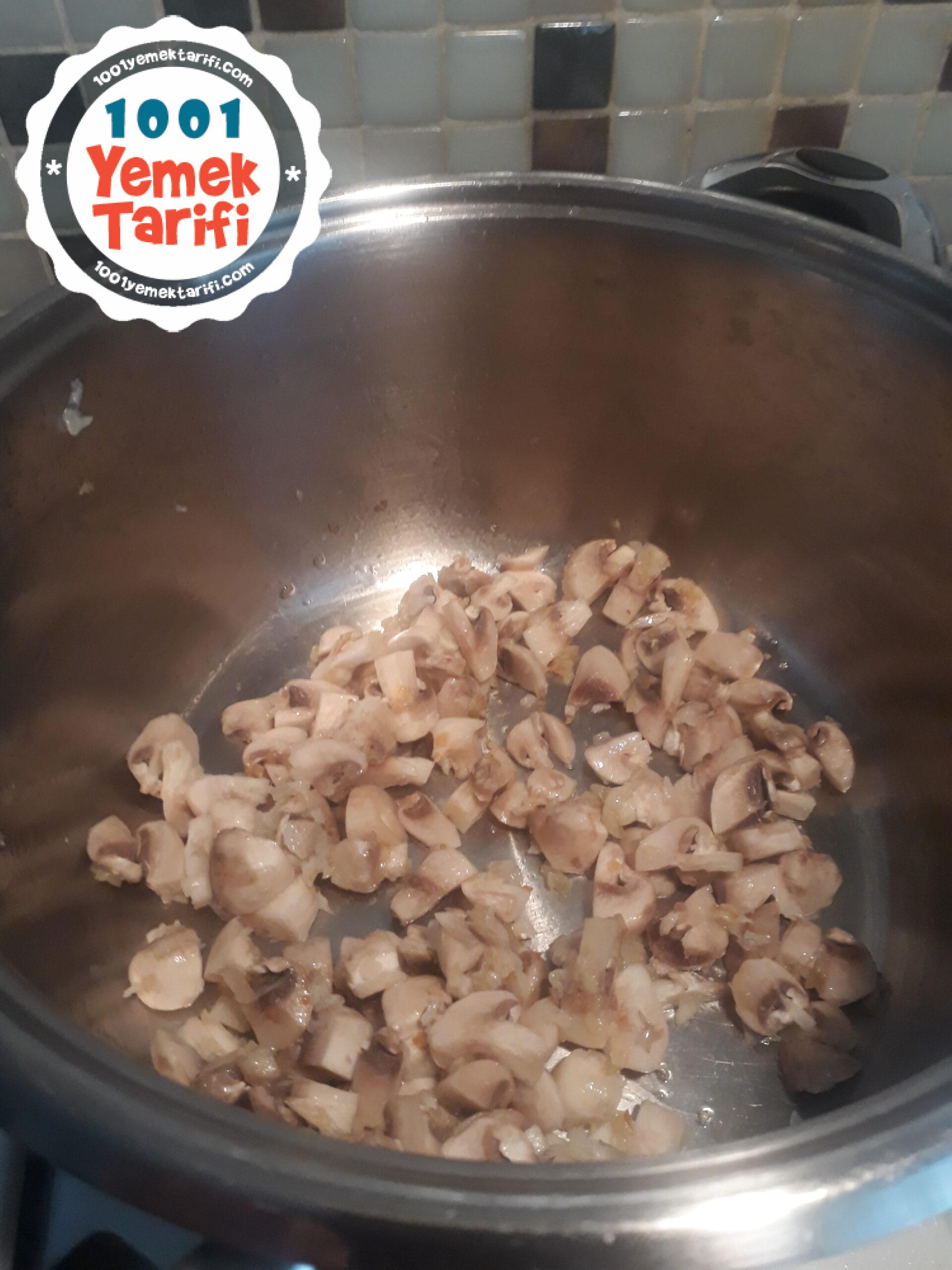 - Hemen ardından minik doğranmış mantarları ilave edin.