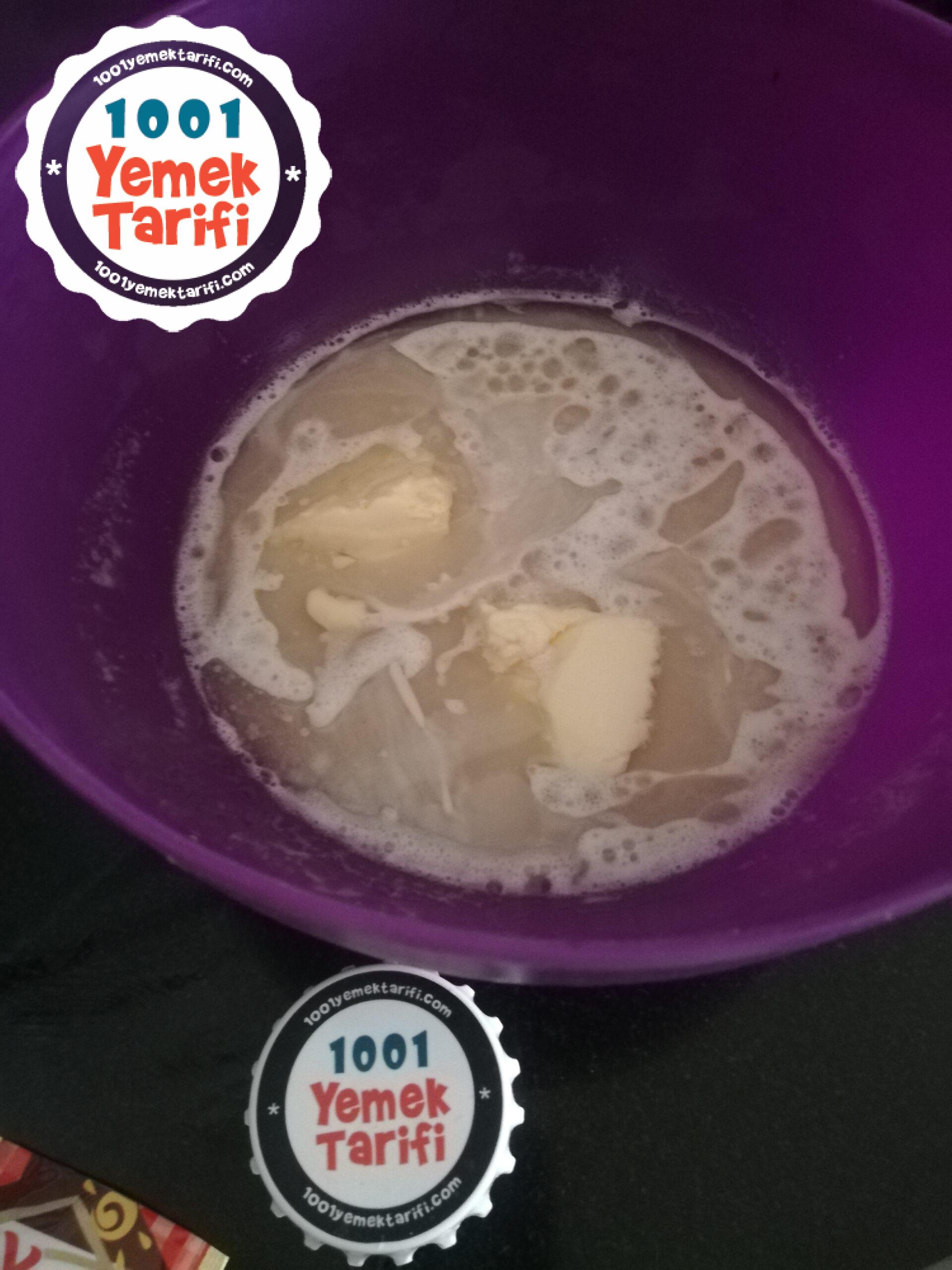 - Aktifleşen mayanın üzerine sıvıyağ ve tereyağı alıp tuzunu da atıyoruz