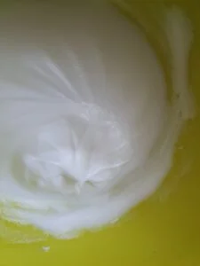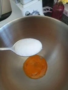 - Öncelikle yumurtaların akıyla sarısını ayırın. Sarı karışıma 1 kaşık şekeri ekleyip çırpın. Sıvı yağını ekleyin biraz daha çırpın.