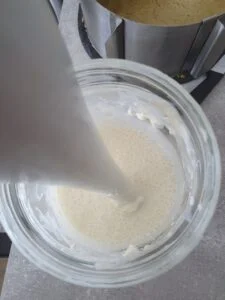 - Geri kalan sütü ekleyip sarı karışıma ekleyin mikserleyin.