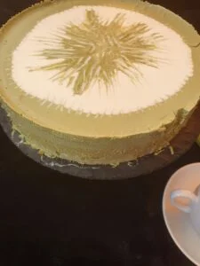 Bu pasta Matcha tozundan yapılmış harika bir tarif olacak. Japonların yeşil çayından yapılan görünümü muhteşem bir pasta yapımı.