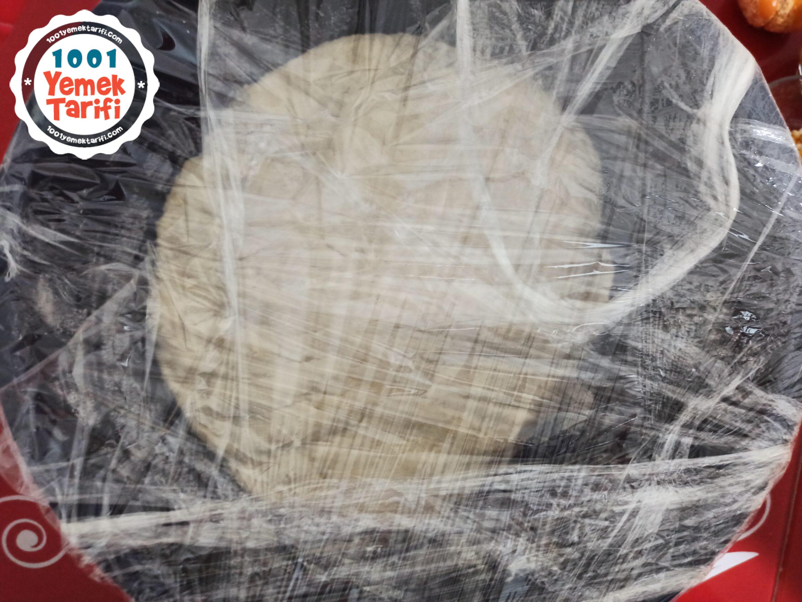 - Bir tatlı kaşığı tuzumuzu da ilave edip hamurumuzu yoğuruyoruz ele fazla yapışmayan hamur haline getirip 5 dk daha yoğurup streç ile uzerini kapatiyor ve mayalanmaya bırakıyoruz ( Ben akşam yoğurdum sabaha kadar mayalanmaya bıraktım) siz tercihinize göre akşam icin yapacaksanız 5 saatlik bi dinlenme süresi olmalı puf puf kabarması açısından.