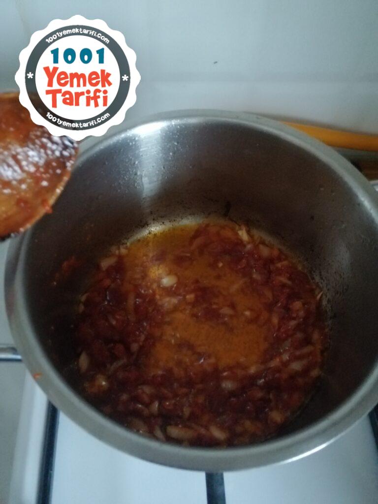 - Hafif pembeleşen soganlara salçamızı ekleyelim az daha kavuralım…