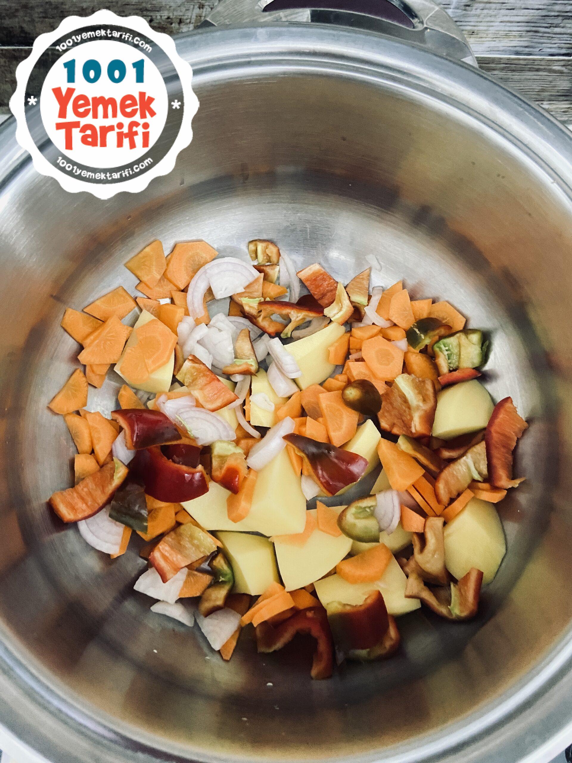 • Rendelemiş olduğunuz patates ve havuçları da ekleyin.